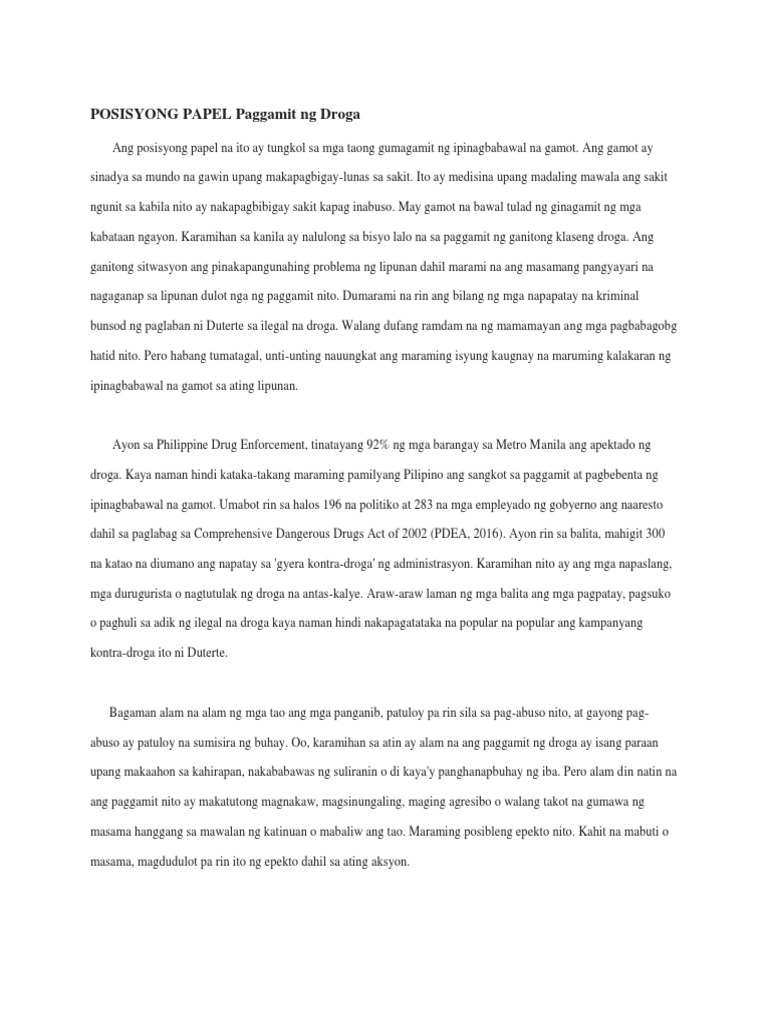 Ang malala ang iba dahil sa sobrang paggamit ng droga ay namatay. Sanaysay Tungkol Sa Droga 7 Halimbawa Ng Sanaysay Tungkol Sa Bawal Na Gamot O Droga Tagalog. Pangalawa sa kabataan dahil sila ang pag-asa ng bayan.