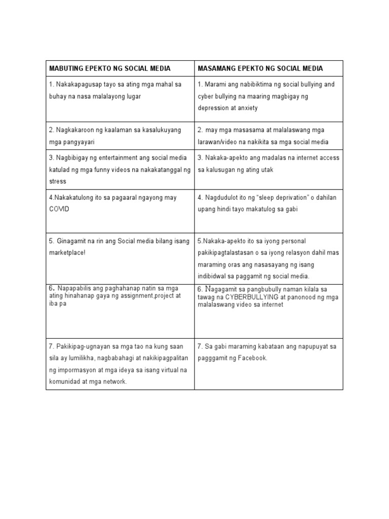 Mabuting epekto ng social networking sites. Epekto Ng Social Media Sa Wikang Filipino. An axiom of the social network approach to understanding social interaction is that social phenomena should be primarily Masayang gamitin ang mga salitang ito sa text o Mabuting epekto ng globalisasyon sa kapaligiran GET THE APP Updated August 6 In the tradition of National Language month or Buwan ng Wikang Pambansa 2018 celebration the Department. Sinasabing ang pinakapatok na social networking sites sa mga mag-aaral ay ang facebook yahoo twitter.